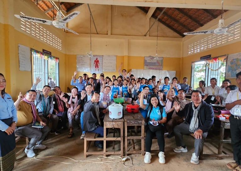 On January 14-17, 2025, the ICS Team, together with SNV and Government officers traveled to participate and exchange visit in the smoke-free village opening ceremony in Kampot Province, Cambodia. Visited a health center how to raise awareness and provide the knowledge about how smoke from the kitchen impact to health, after that visited school to see how teachers raise awareness for their students and also teaching the students cooking by using the electric cookers. Then visited the village council provided information on the use of clean stoves for household cooking. Finally visited the ceremony and announcement on smoke fee village that more than 800 people participated. the participants were happy and proud to have participated in this event, gained experience, learned how to work with local authorities and organizations to achieve goals and can also learn lessons to apply. We saw differences in many aspects and saw the attention of each group.