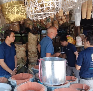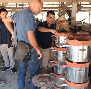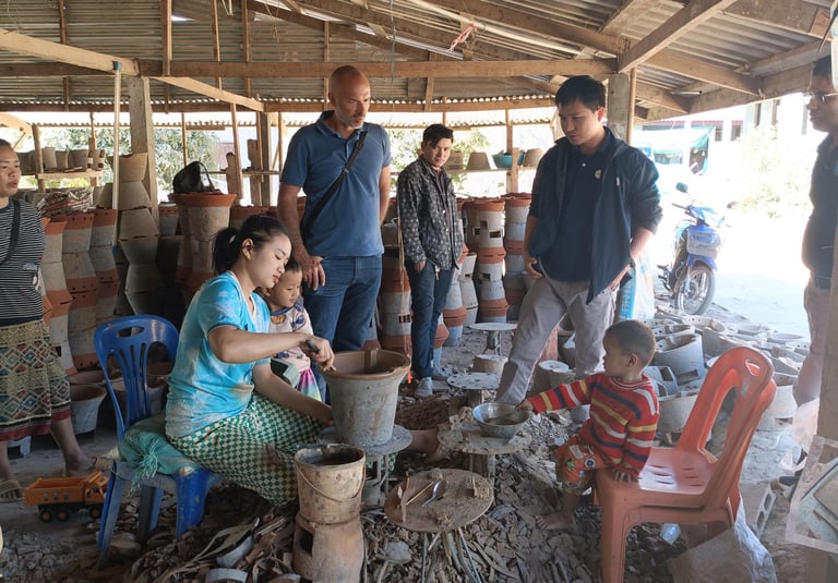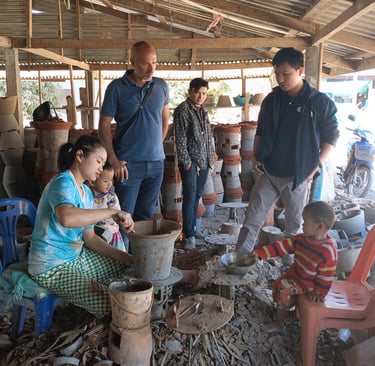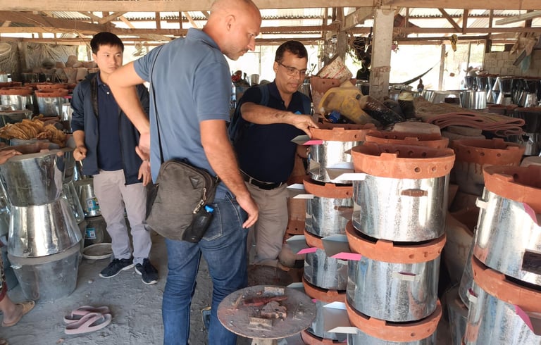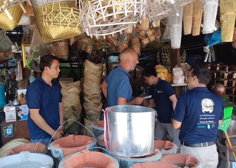 In February 8th, 2025, we led guests and SNV to visit producers, stores, and consumers in Sanasomboun district, Pakse city, Champasak province. The purpose was to learn about the ICS, introduce the stove production process, starting from preparing the soil to assembling the stove until it is finished. When visiting the store, we were to ask about the use of the stove, see the durability of the stove, and save fuel, less smoke, and high heat in cooking.