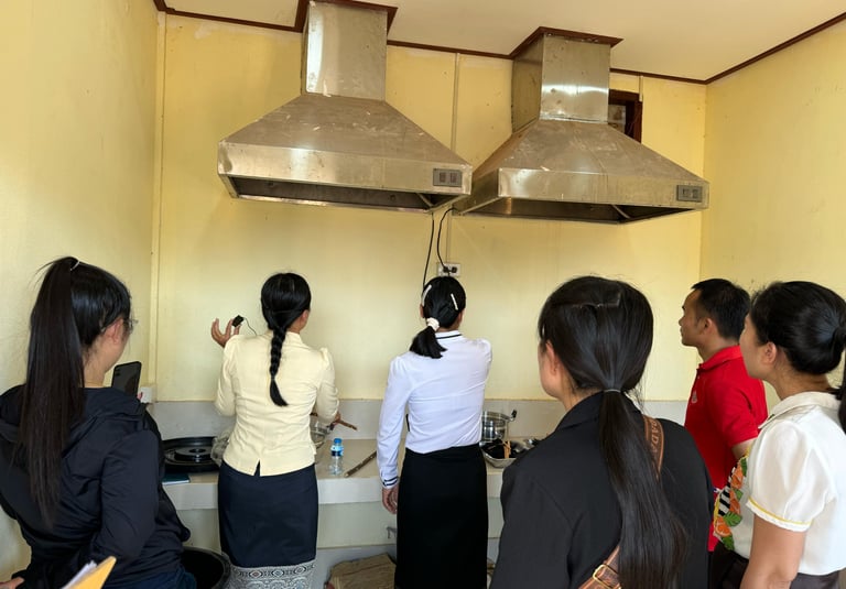 We, the smoke-free village team, together with SNV and the District Women's Union, promoted smoke-free villages, collected data on households purchasing new electric stoves, and provided a 30% rebate to target households purchasing new electric stoves. In addition, we held a meeting to discuss and review smoke-free village activities, past successes, advantages, and challenges, with village organizing committees in Atsaphangthong, Outhoumphone, and Champhone districts, Savannakhet Province.